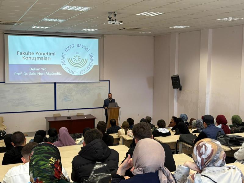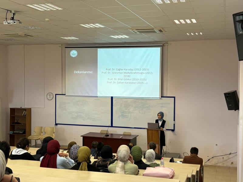 01 Ekim 2025 Çarşamba günü saat 12.00’de, Dekanımız Prof. Dr. Şaban Karasakal, Dekan Yardımcılarımız Prof. Dr. Said Nuri Akgündüz ve Doç. Dr. Seyyid Sancak ile fakülte hocalarımızın katılımıyla, fakültemizin 108 nolu salonunda birinci sınıf öğrencilerine yönelik Oryantasyon ve Bilgilendirme Toplantısı gerçekleştirildi.