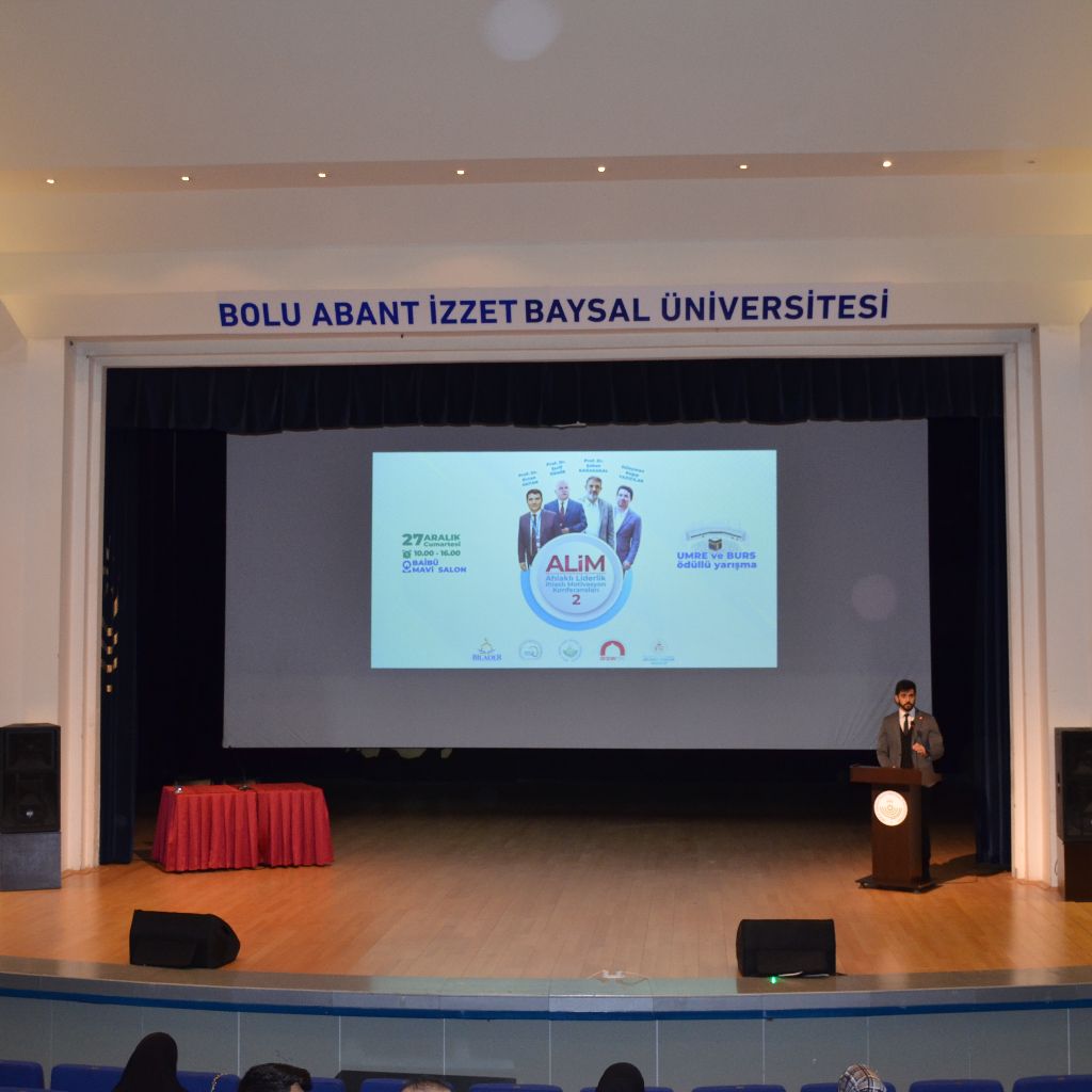 Bolu Abant İzzet Baysal Üniversitesi, BİLADER, Mefkure Topluluğu, Önder Genç ve Diyanet Gençlik Merkezi iş birliğiyle düzenlenen Ahlaklı Liderlik ve İhlaslı Motivasyon Konferansları (ALİM) serisinin ikincisi, 27 Aralık Cumartesi günü saat 10.00–16.00 arasında BAİBÜ Mavi Salon’da gerçekleştirildi.