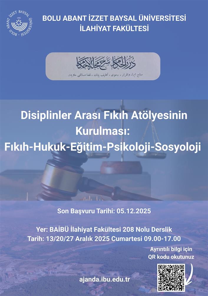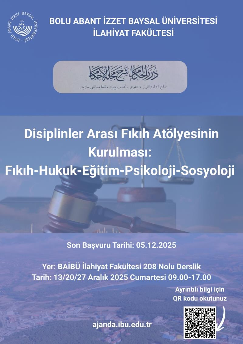 2025-BDP-017 numaralı BAP-03 türündeki “Disiplinler Arası Fıkıh Atölyesinin Kurulması: Fıkıh – Hukuk – Eğitim – Psikoloji – Sosyoloji” adlı proje kapsamında düzenlenecek olan atölye çalışmasına başvurular başlamıştır.
